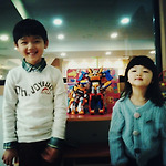 주일 오후 @ 교회 유리방(모자실) 전날 새로 산 또봇 3단변신합체로봇, 그리고 예전에 산 또봇을 두고 지성이와 아린이 기념샷~! // 아빠 iPhone 에서 작성된 글입니다.